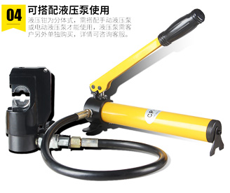 6、分離式壓接鉗的特性:可采用手動(dòng)式、電動(dòng)式和汽油發(fā)動(dòng)機(jī)單動(dòng)式液壓油泵浦;規(guī)格小、很輕,非常合適在高處和室內(nèi)空間窄小的地區(qū)工作 ;磨具購買:同EP-431、EP-510C;